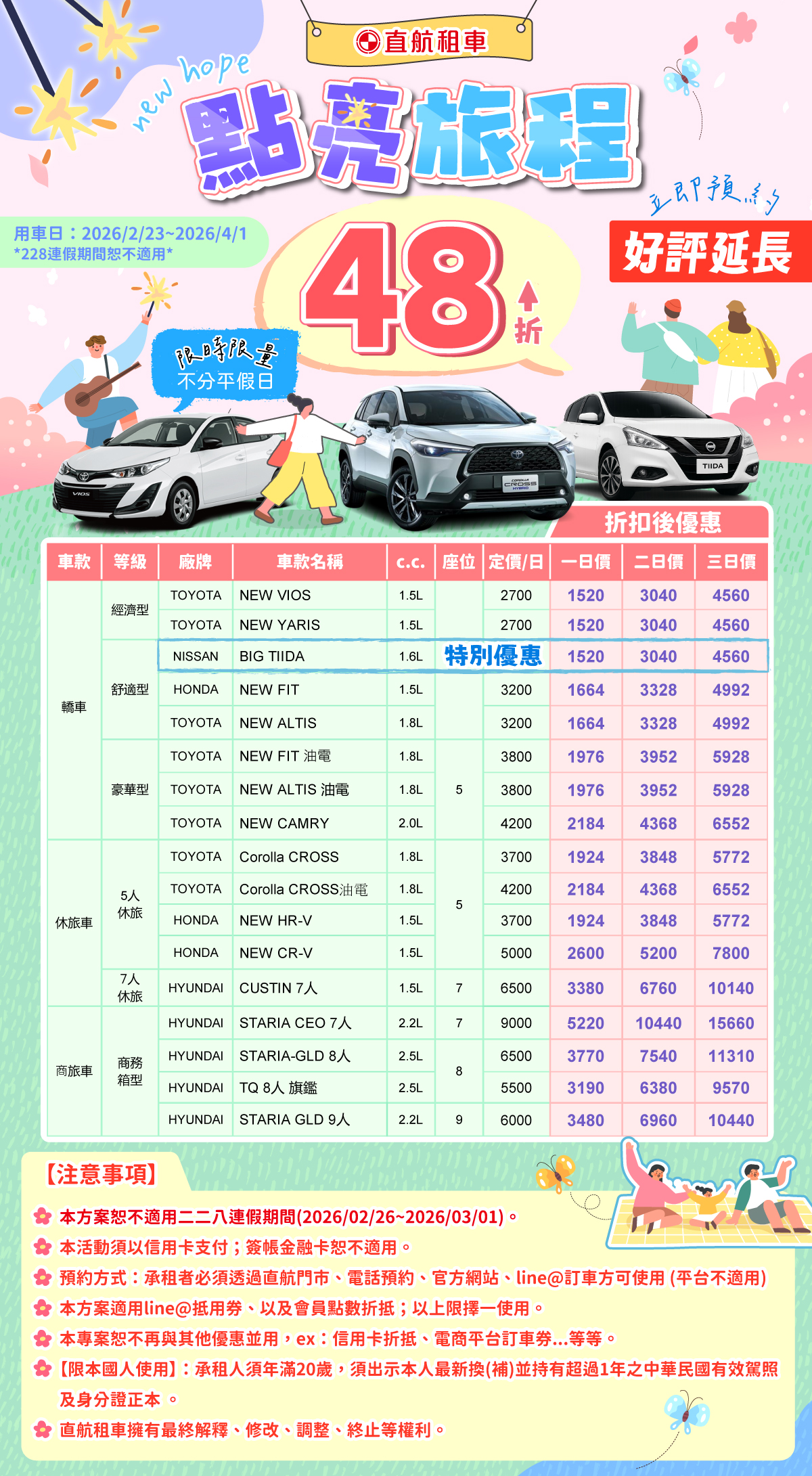 ※ 本方案恕不適用228連假期間(2026/02/26~2026/03/01)。